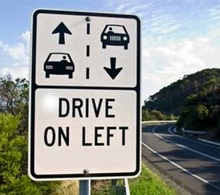 Pour l'automobiliste, arrivant à Douvres, par le ferry et peu habitué à circuler à gauche, c'est l'inquiétude ! Cette appréhension est grandissante, lorsqu'à la sortie du ferry, un panneau indique «Drive on the left», mais le chauffeur suivra le flot de voitures de manière vigilante. S'adapter à la conduite à gauche constitue un véritable défi d'autant que la prochaine épreuve sera le «rond-point». Il lui faut s'habituer à changer rapidement ses réflexes.