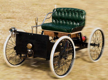A l'arrivée de l'automobile, la conduite à droite va être justifiée par le fait que les premières automobiles avaient le frein, constitué d'un levier disposé à l'extérieur de la carrosserie, pour la main droite. Quant au volant, il fut installé au centre, puis à gauche du tableau de bord. Lorsque le frein à main se déplaça au centre de la voiture, le volant passa à gauche pour permettre au conducteur de continuer à utiliser le frein à main de la main droite. Tout en continuant à rouler sur le côté droit des routes, afin de mieux apprécier les véhicules arrivant en sens inverse. |  |